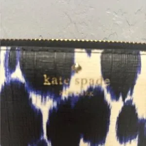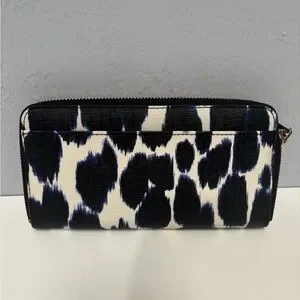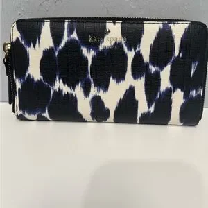 Elegant wallet with bold black and white design. Features secure zip closure. Ideal for daily use.