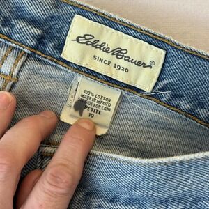 Eddie Bauer High Rise Mom Jeans Medium Wash Denim Tapered Leg Womens 10 Petite