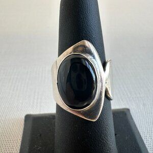 Modernist Sterling Silver and Onyx Ring Size 7 Made in Mexico: Black Onyx