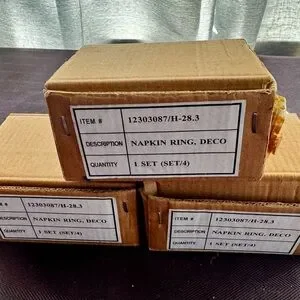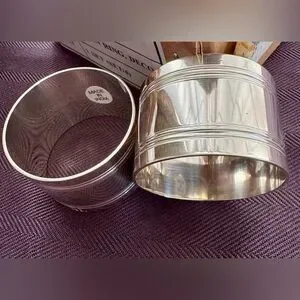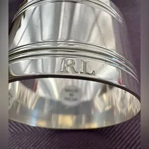 This is a stunning set of brand new never used still in boxes Ralph Lauren 2005 “Deco” napkin rings. They are silver plated and have gorgeous groove lines around the top with the RL stamp on it.