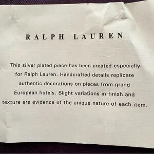 These are silver plated there is no .925 stamp. The were made exclusively for Ralph Lauren (see info card picture)