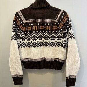 American Eagle Brown and Cream Turtleneck Sweater Large