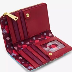 Enchanting Loungefly wallet featuring Disney Beauty and the Beast. Bold red and blue design. Ideal for Disney fans. Hardtag.