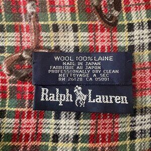 Vintage flawed Ralph Lauren ski jump wool scarf made in Japan. Most likely 1980s or '90s. Has a few small holes as pictured, but they are not noticeable when you are wearing the scarf. I've also seen these framed. Very thin wool. Amazing ski graphic with plaid border. Measures 34 x 34 inches.