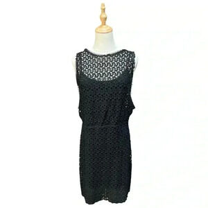 Free People Black Cut Out Crochet Pull Over Dress Size L