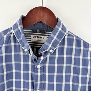 Express Mens Blue Checkered Long Sleeve Button Down Up Dress Shirt Classic Small