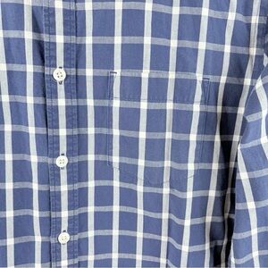 Classic plaid design with button-down collar. Perfect for casual outings. Soft and durable fabric. Great used condition - may show the slightest wear since it’s navy but that’s being super cautious.