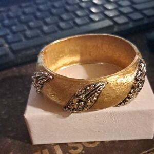 This stunning women's bracelet features a beautiful blend of gold and silver tones, perfect for adding a touch of elegance to any outfit. Its intricate design makes it a standout piece in any jewelry collection.