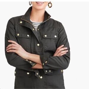 Chic olive green utility jacket from J. Crew Factory. Features gold accent snap buttons and a versatile design. Pit to pit is 20 inches. Shoulder to hem is 24 inches. Excellent condition - only worn a few times.