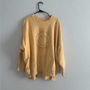 Embrace positivity with this cream sweater. Features a smiley face and 'Total Optimist' text. Ideal for casual wear.