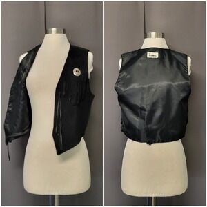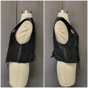 Vintage 70s Gitano Suede Fringe Vest Black Western Concho Boho Medium