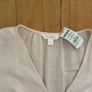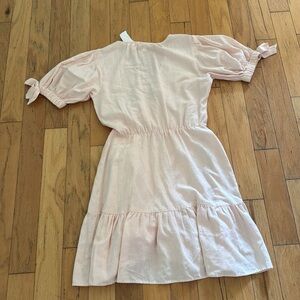 Lauren Conrad | Light Pink Stripe Ruffle Dress | Puff Sleeves | Bows | size XS