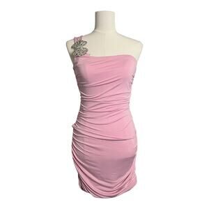 One Shoulder Coquette Body central Dress Girly Romantic 90s y2K Rhinestone Club
