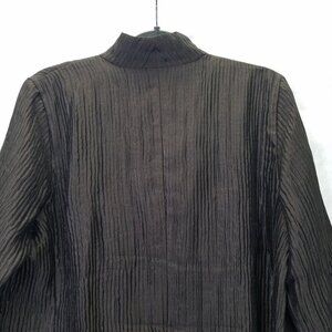 Eileen Fisher Silk Open Front Blazer Jacket M Textured Lined Brown 3/4 Sleeve