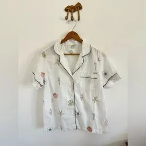 Printfresh Beachy Embroidered Seashell Pajama Top Only Small