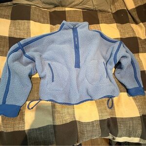 Alter’d State sprint cozy blue fleece pullover with quarter-zip design. Features two front pockets and drawstring hem. Blue. Size XL.
