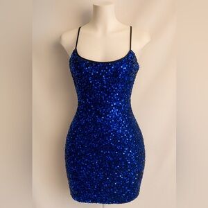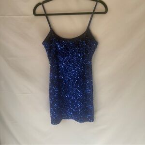Lucy in the Sky Cobalt Blue Sequin Juliette Mini Dress Size Large