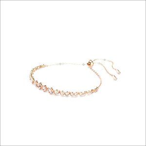 Items delivered: (1) Soft bracelet with round pink crystals on rose gold-tone finished band, complete with bracelet box.