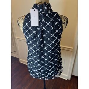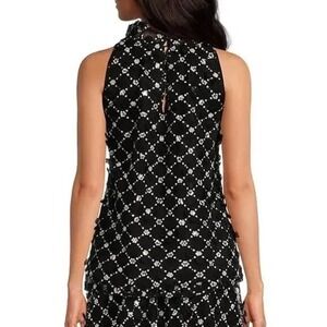 Abbey Glass Black 3D Floral Sequin Mesh Sleeveless High Neck Top NWT sizeXS