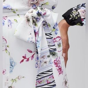 WHBM Dress in Stunning Floral Print ➖ Smocked Waist for Perfect Fit ➖ Matching Removable Belt ➖ Long Sleeves with Elastic Cuff ➖ V-Neck ➖ Fully Lined ➖ Back Slit ➖ Armpit to Armpit 19 3/4”… Waist 17” … Hips 21”… Length 57” from Shoulders … All Measurements Taken Laid Flat