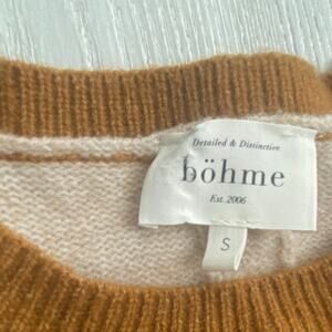 Bohme Women's Cream & Camel Brown Knit Crewneck Sweater Size Small
