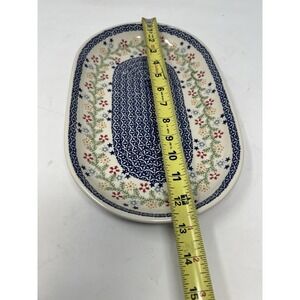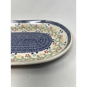 Unikat Hand Stamped Polish Stoneware 12.75" Floral Oval