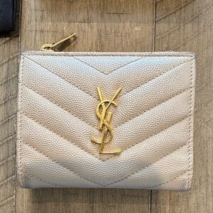 Authentic Saint Laurent Cream Quilted Leather Wallet