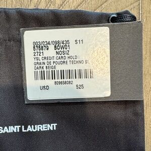 Luxurious Saint Laurent wallet in “dark beige” quilted leather. Features iconic gold logo.