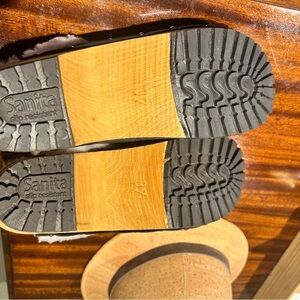 The Sanita Clogs Women 6.5M Hese Shoes are a stylish and comfortable option for women looking for a slip-on clog design. Made of black leather with wool lining, these mid-height clogs feature a round toe, adjustable strap with buckle closure, and rubber outsole for durability. They are perfect for casual occasions and travel, offering both arch support and comfort with a wool insole. Ideal for summer, fall, and spring, these Sanita Hese shoes in size 6.5M are a versatile addition to any woman's wardrobe.