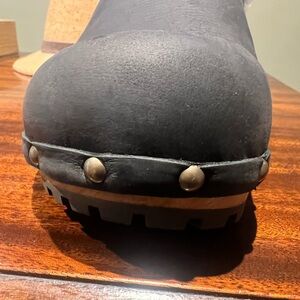 Sanita Clogs Women 6.5 M Hese Shoes Black Leather SlipOn Wood Wool Lined Mules