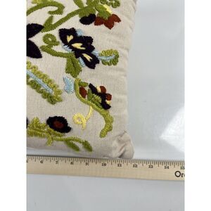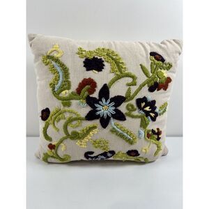 Floral Crewel Embroidery Needlepoint PILLOW Cottage Core Boho Beige Green Soft