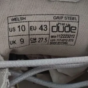 Hey Dude Welsh Grip Shoe Men's Light Gray Size 10