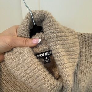 Soft and snuggly with a cozy ribbed knit, Steve Madden's sweater dress is topped off with a turtleneck for added warmth.