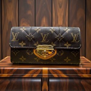 Chic wallet with signature monogram pattern. Features a stylish gold clasp.