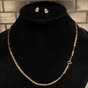 This elegant gold necklace and cz earring set adds a touch of sophistication to any outfit. Perfect for any occasion.