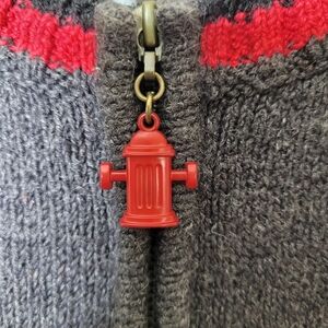 Dog print with fire hydrant zip pull
