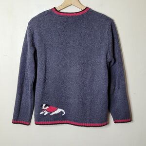 Talbots Vintage Dog Print Cardigan Sweater Full Zip Ramie Cotton Preppy Size S