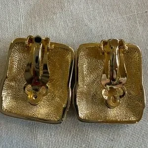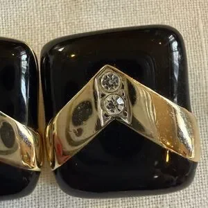 Vintage Art Deco Earrings Black Onyx and Gold Tone chevron overlay Rhinestones