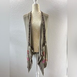 Caite / Athleta Floral Embroidered Open Front Olive Green Cardigan Vest Medium