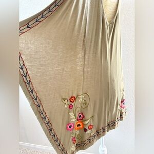 Caite / Athleta Floral Embroidered Open Front Olive Green Cardigan Vest. Size Medium. Good pre-owned condition. Perfect for Spring / Summer. Smoke free home. Weighs 11 ounces for shipping.