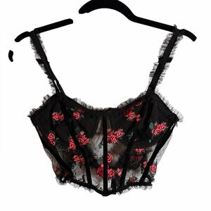 For Love And Lemons Rosebud Bustier Black w Red Rose Embroidery Womens Sz Small