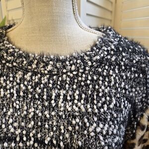 POL Black and White Textured Sweater with Leopard Sleeves