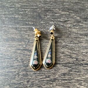 Vintage earrings. Gold accents one backing is not original and is grey as shown.