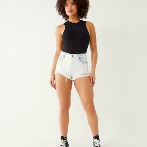 True Religion Caia Ultra High Rise Super Skinny Destroyed Raw Hem Shorts Sz 32