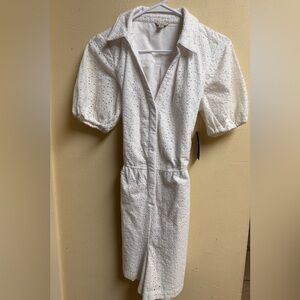 GUESS Eyelet White Romper Size Small NWT | Summer Puff Sleeve Belted