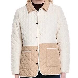 Jones New York Cream and Tan Quilted Puffer Jacket