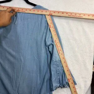 J Jill L Denim Bell Sleeve Chambray Top Lightweight Tencel Boho Minimalist