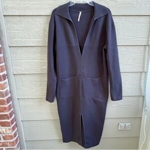 Free People Black Midi V Neck Front Slit LS Dress 44” Bust Goth Grunge Witchy
