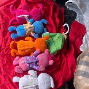 MATEO FISHER-PRICE VINTAGE 5 Plush sing-along 2011 toys they all take batteries. I put four batteries in two AAA of them so you could see how they work two of them has lost their shirt.. they’re clean with no stains