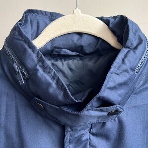 - snap closure at collar, front breast zip pocket, inside pocket, zip in hood in collar